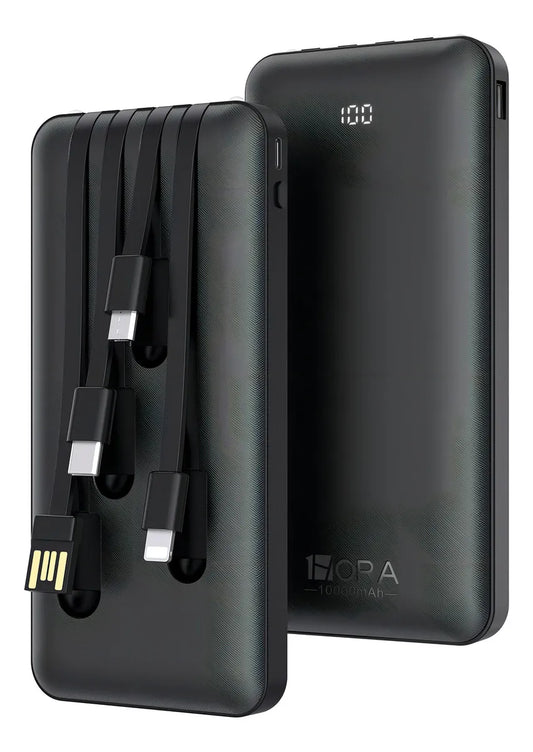 Power Bank 10000mAh con Cables Integrados y Linterna LED 1 Hora