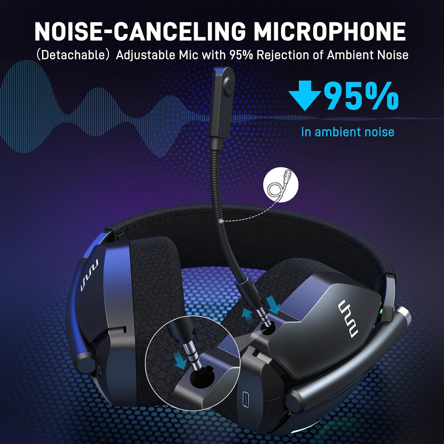 - Micrófono: Desmontable, cardioide con cancelación de ruido