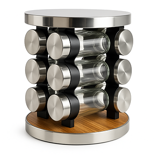 El Especiero Giratorio de Madera con 12 Frascos combina diseño moderno, materiales de calidad y funcionalidad para mantener tus especias organizadas y tu cocina siempre elegante.