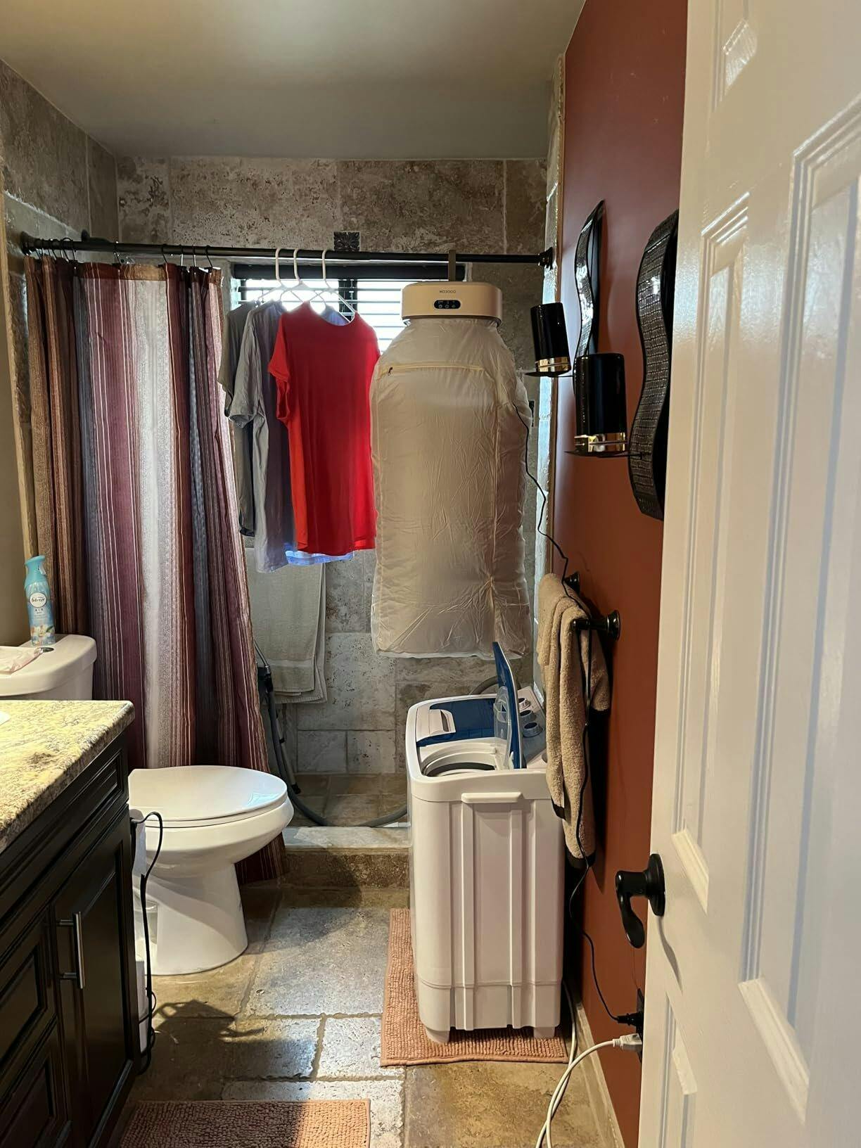 “Muy conveniente para usar con mi mini lavadora portátil. Perfecto para todo tipo de prendas superiores, incluyendo camisetas. Es muy fácil de colgar.”