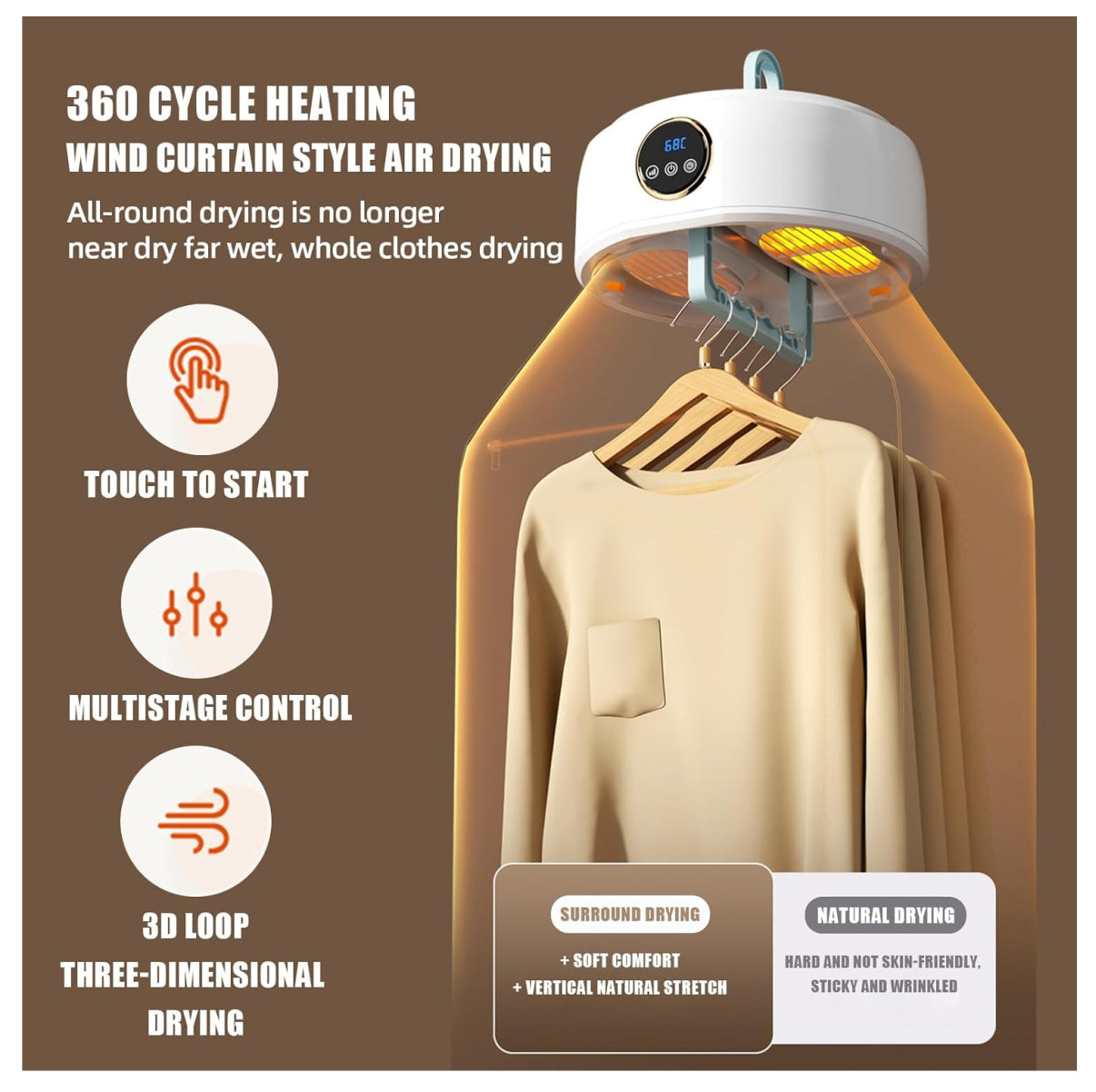 La Mini Secadora Eléctrica Portátil es la solución ideal para quienes buscan secar su ropa rápido, ahorrar espacio y mantener sus prendas higienizadas.