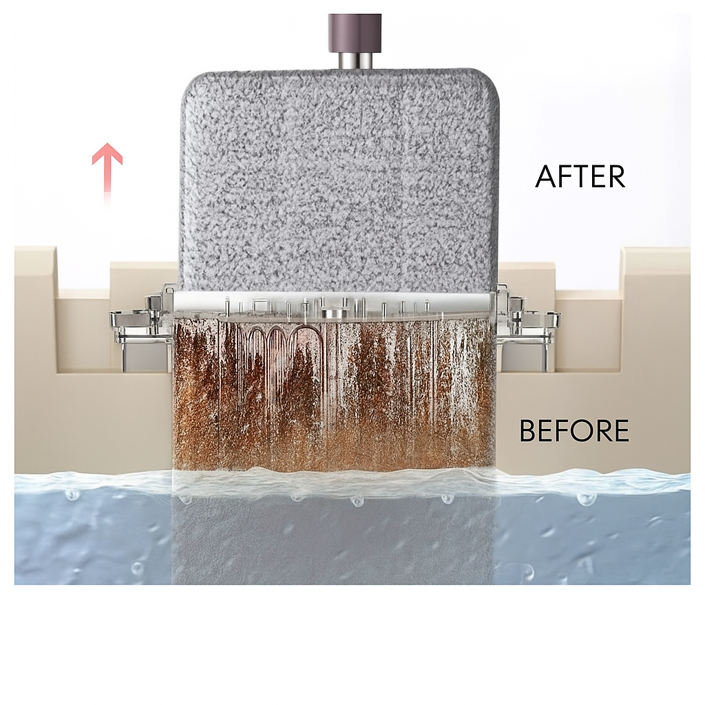 El Trapero de Microfibra con Cubo Automático simplifica tu rutina diaria con un sistema inteligente que lava, enjuaga y escurre sin que tengas que tocar el agua sucia.